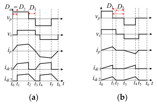 By putting three phase shifts’ relationships of the ITPS in [16] into (3), the variation rate of the average transformer current within a half switching cycle is