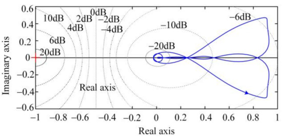 Based on these determined parameters, the Nyquist curve of is drawn and shown in Figure 13. From Figure 13, is always less than 1 in the entire frequency range. In consequence, the designed closed-loop system is globally stable.