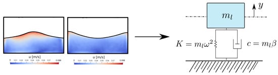 where the solid moving mass accounts for the masses of the C-shaped wooden structure, tank, mechanical bearing system and attachments. An in-depth explanation of the derivation of Equation (4) can be found in []. Using the liquid mass and its initial acceleration due to the tank movement as characteristic values, the vertical sloshing forces presented in this paper are non-dimensionalized with .