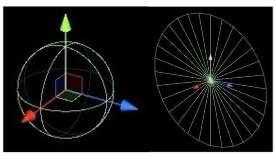First, we collect approximately 10,180 CAD three-dimensional models of key parts of agricultural machinery, convert their file formats in batches using the macro command of SolidWorks and 3DMAX, and import them into the virtual reality engine. Second, combined with the structural characteristics of the rotating body of the key parts of agricultural machinery, the system constructs the cube bounding box. According to the side length relationship of the bounding box, the posture of the parts is adjusted until the rotation axis is parallel to the x-axis of the world coordinate system and scaled to the appropriate size (see Figure 2). Through experiments, the best resolution of image samples in the dataset is 960 × 960, and the best size of parts in the sampling environment is 4. According to this conclusion, the system obtains the value of the rotation axis side length (L) and radial side length (R) of the cube bounding box of the three-dimensional model of the part and scales them into R = 4, L = L × 4/R [27].
