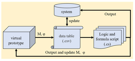 The object structure of the virtual prototype is a multilevel structure, including a mesh solid model layer for physical simulation and data acquisition, a data layer for accessing part of the CAD data, an assembly datum layer for assembly behaviour definition, and a 3D model layer for appearance rendering. The mesh solid model and data layers access and calculate data through scripts, which can be called by the main program of the system. The call logic of each part is shown in Section 3. The schematic diagram of its structure level and screenshot of the system are as shown in Figure 1.