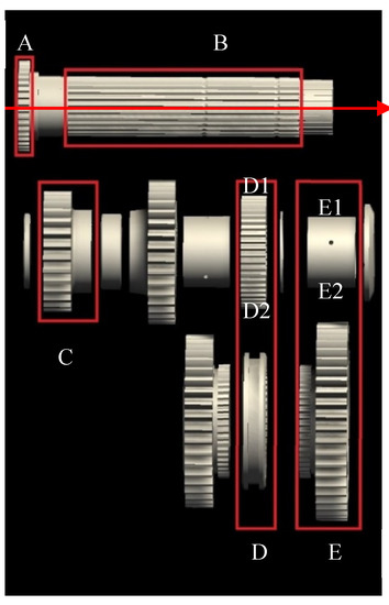 The key feature parameters of parts include the design parameters of mechanical parts such as tooth tip circle radius, number of teeth, tooth width, arc outer diameter, and arc inner diameter, for which the system sets corresponding detection means. Table 1 and Table 2 summarize the feature combination of all key parts of agricultural machinery and the key parameters of each type of feature.