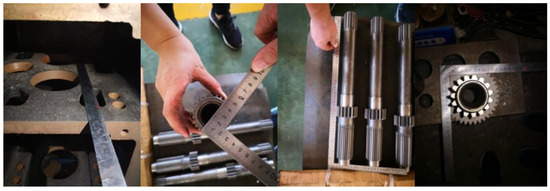 Using the bearing selection scheme data of transmission components of an agricultural machinery gearbox, designed and produced by an enterprise, the recommended bearing model is generated after automatically completing the construction of the virtual prototype, and the accuracy of the system is verified by comparison with the actual process data. Finally, the system performance is evaluated by the software evaluation of the third-party organization. The field data measurement is shown in Figure 20.