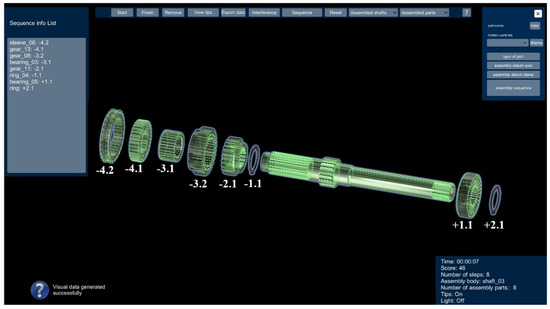 The assembly sequence visualization interface and the assembly sequence number of each part are shown in Figure 21, as well as the assembly sequence evaluation data in Table 9.