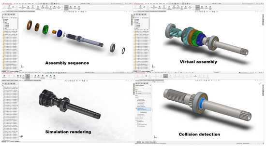 In this work we analyze the existing intelligent design platform and research results. In terms of system functions, SolidWorks has released its commercial plug-in for collision detection. Users can select features and define the relative motion relationship between parts to obtain interference data. However, there is a lack of global data automatic detection and a real-time feedback function of multiple parts. Rameau designed the calculation method of fit clearance under various assembly conditions [6]; however, the computational efficiency of this method was low, and the algorithm process was cumbersome for the agricultural machinery assembly data with strong regularity. Schleich designed a multifunctional virtual prototype for product design data analysis [4,7,8]. Assad constructed a simulation system to estimate production data [9,10,11], but they both lack the data compatibility of simulation analysis function and multiplatform interaction. In terms of data management, Ahmed built a cross-system product data management platform [11]; Wu built an algorithm for reuse data analysis and call [12,13]; Zhang designed the reconstruction algorithm of the feature surface to calculate the part feature data [14,15]; and Bobenrieth used 2D sketches for reuse design and model retrieval [16,17]. However, there are still problems of poor real-time and simulation. In terms of interactivity, NX, Creo, and other mainstream commercial CAD software import parts and manually plan assembly through users during virtual assembly; Wang, used algorithms to construct assembly constraints to control part assembly [18,19,20,21]; and Alejandro combined virtual reality technology to develop a more interactive and practical design system [4,22,23,24].