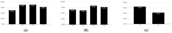 Next, we explore the image’s frame rate difference in the recognition rate. Since the frame rate of GoPro was set to 60 fps, the jump points 1, 2, 3, 4, and 5 frames are equivalent to 30, 15, 20, 15, and 12 fps. Figure 12a–c show the accuracy of 30 frames, 60 frames, and 90 frames corresponding to each fps, respectively. It can be seen that the best accuracy in the case of 60 frames is 30 fps.