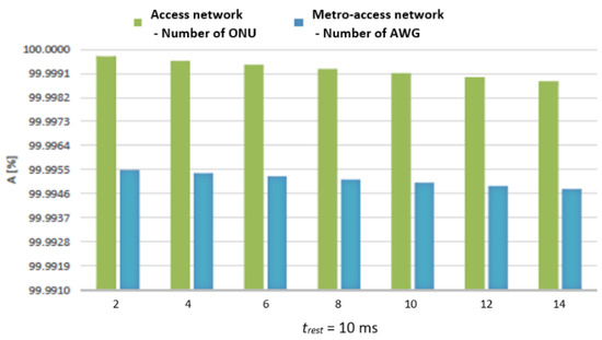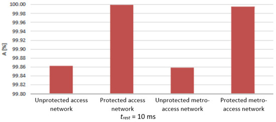 The protected access network has markedly better results with five places nine availability, when the protected metro-access network availability has only four places nine. However, the protected metro-access network provides traffic for a higher number of users and can be easily modified according to demands of specific network operators.