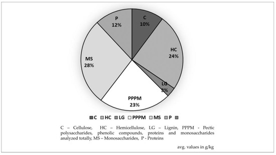 After collection, all the samples used in the present study were immediately transported to the laboratory. For each HC, new portions of substrates were taken; their composition was estimated after each subsample collection. The detailed characteristic of all the substrates is presented in Table 1, and the composition of LB is presented in Figure 1.
