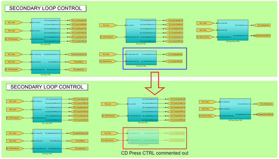 In Figure 5, we can see a general view of the ANS subsystems, divided into three subsections. The two above, from left to right, show: (a) the control loops and protection system; and (b) primary and secondary loops. The bottom subsection shows the external interface, comprised mainly by the Comm Module and Matlab Historian.