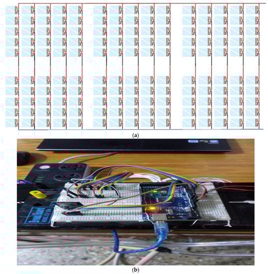 (a) Electrical connections of the panel board in parallel and series, and (b) Electrical connections of a microcontroller (Mega).