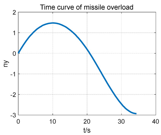 where v is the flight speed of the missile, θ is the trajectory inclination angle, x is the longitudinal position coordinate, and y is the height position coordinate, , , and are the derivatives of v, θ, x, and y, respectively, while and are the overload values in the x and y directions, respectively. The acceleration of gravity is g and is equal to 9.81 m/s2. is expressed as