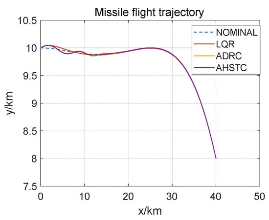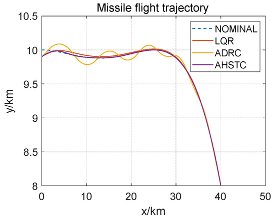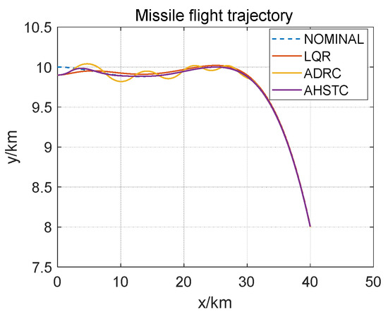 For the cases with an initial position deviation and initial trajectory inclination deviation, the simulation results using three methods designed in this paper are shown in Figure 10, Figure 11, Figure 12, Figure 13 and Figure 14.