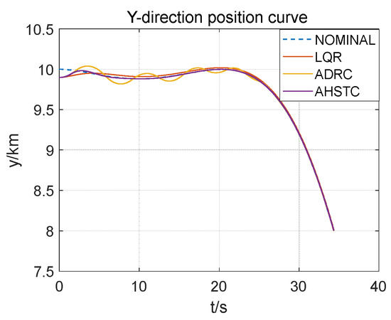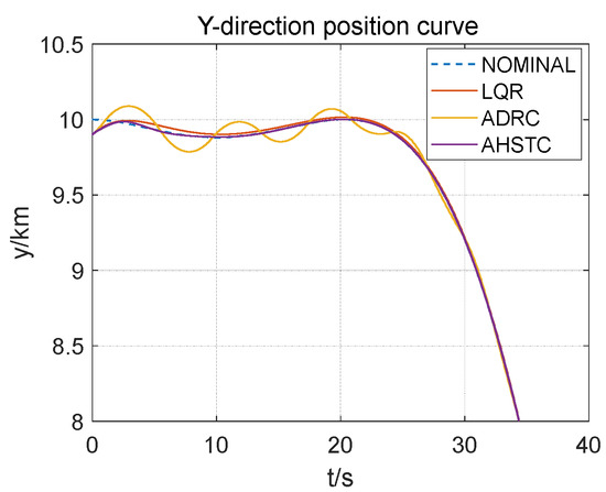 According to [18], the drag characteristics of the entire flight stage have been considered in the overall design of the missile, so that the x directional position and velocity v can be considered uncontrolled. Therefore, the x-directional position and velocity v in this paper assume nominal values, and only the y-directional position and trajectory inclination θ can be controlled. To verify the effectiveness of this method, this paper conducts simulation analysis using different initial deviations.