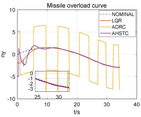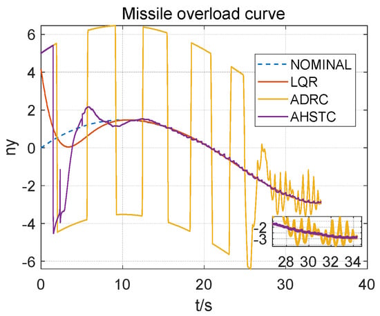 The Figure 7, Figure 8 and Figure 9 reveal that when an initial trajectory inclination deviation is present, the AHSTC controller designed in this paper can achieve good tracking control under the initial deviation, and the control accuracy is high. The position tracking can achieve fast convergence, the angle tracking can achieve convergence in approximately 7 s, and the model convergence speed is fast. Table 3 reveals that the trajectory inclination error between the AHSTC and LQR methods is small, but the AHSTC method has a small terminal height error.