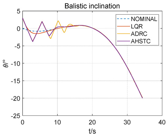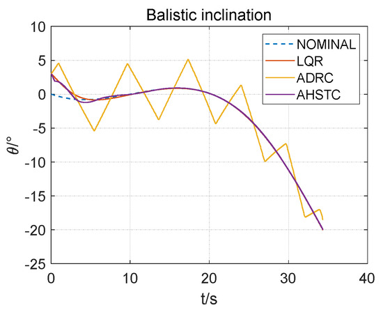 For the case where an initial trajectory inclination deviation is present, the simulation results in this paper are shown in Figure 7, Figure 8 and Figure 9.
