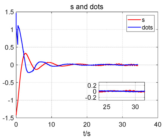- If the value of the time derivative of and is sufficiently small, a higher-order sliding mode surface is established; that is, , and the exponential term will approach 1. The controller is transformed into the linear controller , thereby reducing the control chattering.