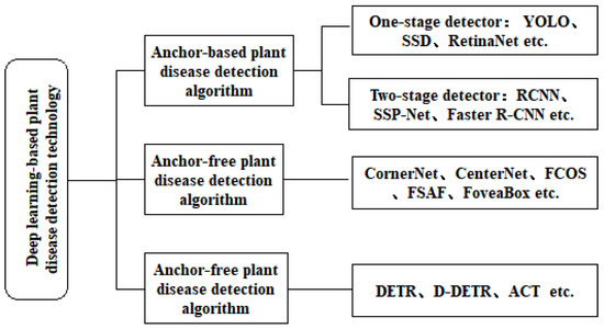 Anchor-based plant disease detection frameworks can be divided into two categories: two-stage detectors and one-stage detectors [23], as shown in Figure 3.