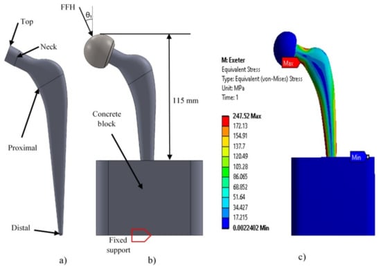 A representative stem (Exeter) was selected from the stems in Table 1, which was accomplished with the criteria of full reported results, precise geometric dimensions, validation through experimental work, and smooth geometry [29,48].
