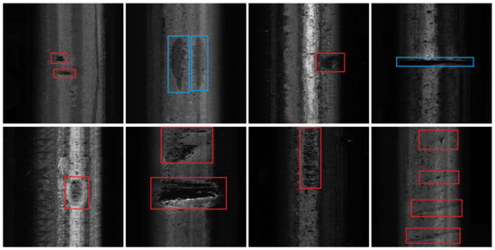 In academic research, both two-stage and one-stage methods are usually trained on large-scale benchmarks such as MS COCO [6] and ImageNet [7], and have been successfully applied to various tasks, such as defect detection [8,9], medical detection [10,11], etc. Nevertheless, detecting a defect on the rail image is not as easy as detecting a normal object on natural images due to the following two reasons. First, the concerned defects are usually tiny and ambiguous because the images are captured from a running train at very high speed. Complex illumination environment makes defects look similar to other non-defect patterns such as dirt or gap. Second, there is a lack of benchmark annotations of these railway defects and some defects are difficult to distinguish from 2D images. The insufficient and ambiguous defect images that are substantially different from natural photos may advise against such pretrain-finetune knowledge transfer.