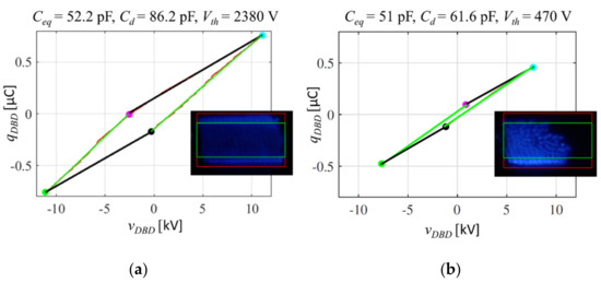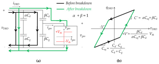 The parameters of this model (Cd, Cg and Vth) are found with experimental waveforms for voltage and current on the DBD, then tracing the electrical charge vs. voltage diagram (known as Manley’s diagram) as shown in Figure 10.