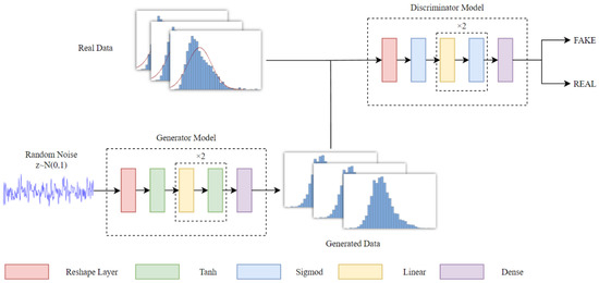 S-GAN Parameter setting: The random noise dimension entering the generator and the dimension of the generated output vector were set to 1, the size of the mini-batch input to the discriminant model was 500, the dimension of the output vector was 1, the initial learning rate was set to 2 × 10−4, and the number of training sessions was 20,000.
