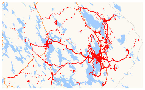 http://cs.uef.fi/mopsi/data, accessed on 5 July 2022), which contains approximately 3 million trajectory data points [