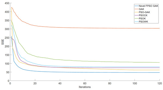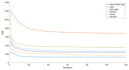 Figure 13, the proposed converges from about the second generation and ultimately converges at the fifth generation. In the beginning stage, the SSE value of the algorithm is substantially lower than that of other algorithms, and after convergence, it is extremely stable.