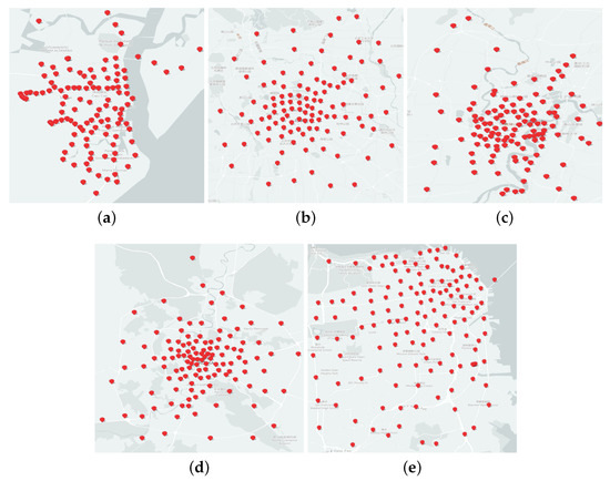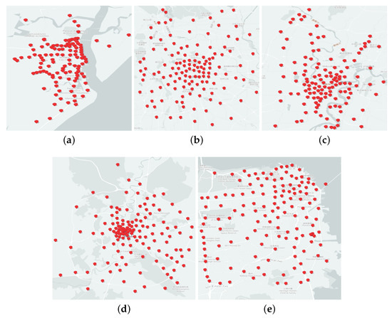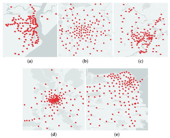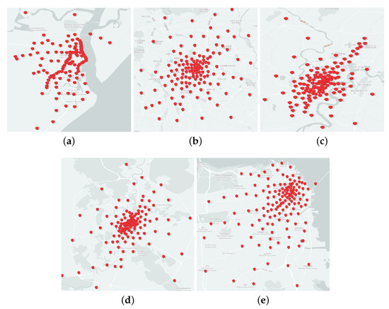 Figure 20 shows the centers of the clustering results for each algorithm in multi-source trajectory data set. On the corresponding map, we intuitively perceive the distribution of clustering results based on various algorithms.