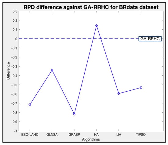 Figure 19 depicts the difference of the average RPD between the GA-RRHC and the other methods.