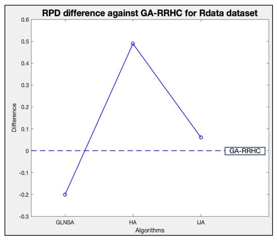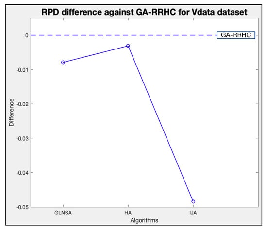 Comparison of the RPD difference per algorithm for the Vdata dataset.