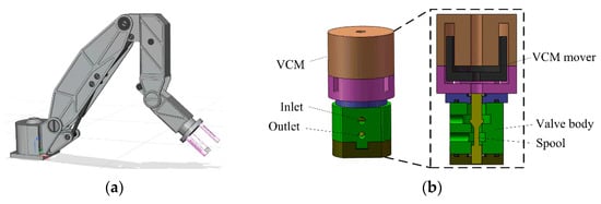 Figure 4 shows the structure of the water hydraulic manipulator and the HSV. The HSV is directly driven by a voice coil motor (VCM). The working state of the HSV is controlled by controlling the state of the VCM.