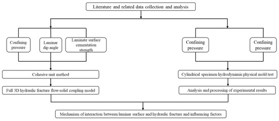 Shale oil and gas, as one of the important development directions in the energy field, have a huge resource potential that is becoming increasingly advantageous, and with the successful development of shale gas on a large scale, exploration research on shale oil is being actively conducted [1,2,3]. China is rich in shale oil resources [4,5], and compared with the major shale-oil-producing basins in the United States [6,7,8,9], China’s terrestrial organic-rich shales have more complex geological characteristics, especially deep shale reservoirs, due to their unique depositional characteristics, resulting in extremely developed shale laminae, natural fractures, and other weak surfaces, which have an important influence on the hydraulic fracture extension behavior and eventual fracture geometry, which in turn affect reservoir transformation and the effect of reservoir modification [10,11,12,13]. Therefore, it is important to study the influence of laminar surfaces on hydraulic fracture expansion for fracture modification in shale reservoirs.
