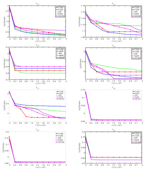 5.2. Experimental Results and Comparisons with Other DE Variants