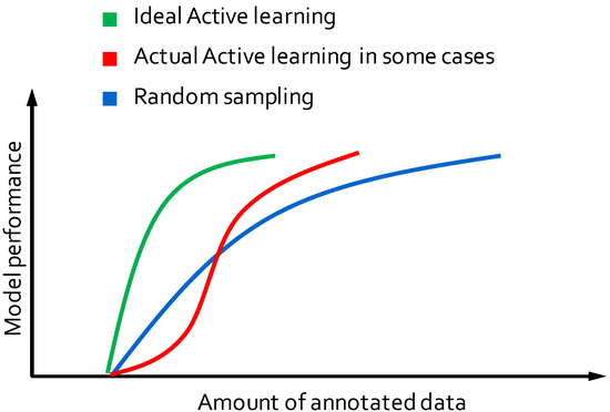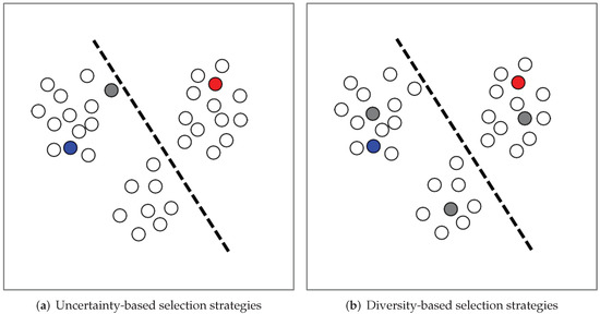 Apart from this, the authors of Refs. [75,76,77] integrated semi-supervised learning and active learning skillfully. They combined uncertainty-based selection strategies and self-training methods and made full use of their respective advantages while making up for their shortcomings. Consequently, their works achieved remarkable results.