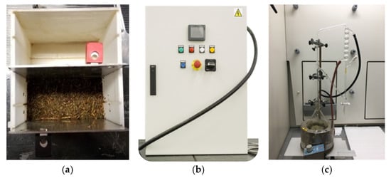 In addition, for the HD process a Clevenger apparatus, as shown in Figure 1c, was used, including a 1 L volumetric flask and the heating mantle (R. Espinar, S.L., Raypa, Barcelona, Spain, No 29245, Model XC-1000, 400 W).