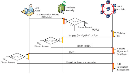 - CA validates , then generates a signature for the and sends it to the owner. The security credentials generated for all are updated in the HLF blockchain of the system.