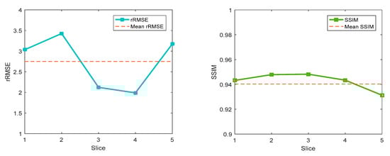 For the SD rat dataset, the relative root mean squared error (rRMSE) was used to evaluate the image quality.