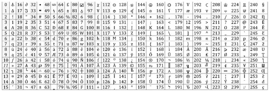 Bytes of each ASCII value.