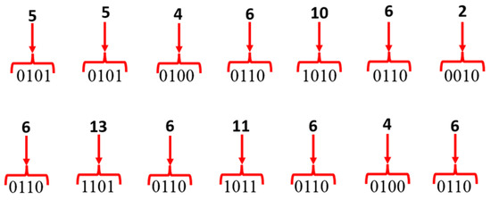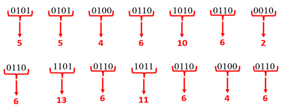 Step-5: After splitting byte values into 4-bits, each bit has been converted to decimal values, as shown in Figure 14.
