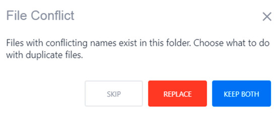 When clicking on the “Replace,” the previous file will be deleted, and the new file will be saved in place of the previous file. When clicking “Keep both,” both files will be saved, as shown in Figure 27.