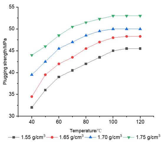 Plugging strength variation at different temperatures and different densities.