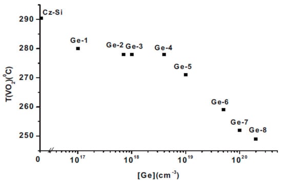 Formation temperature of VO2 defects as a function of Ge dopant concentration. Reproduced with permission from []. American Institute of Physics, 2010.