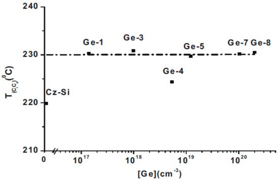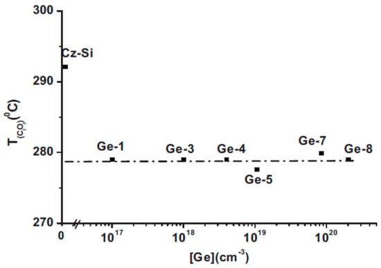 The concentrations of Ge, Oi and Cs of the Cz–Si:Ge samples used in Figure 5 [,].