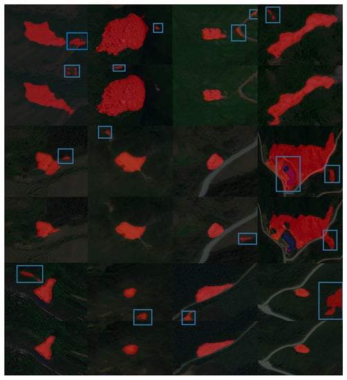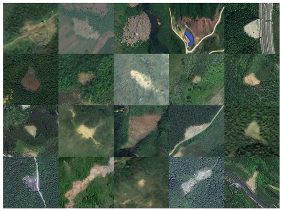Therefore, deep learning methods have been applied to landslide identification. However, due to the diversity and complexity of landslides, these methods still have many problems to be solved. For example, in order to improve the ability to identify landslides, the model needs to learn a large number of data []; this is a key issue because there is very little landslide data currently available. In addition, for this work, more data information can help the model to better improve the landslide recognition accuracy []; however, the acquisition, retrieval, and annotation of datasets is often a difficult point in landslide identification tasks. Therefore, to address the issues mentioned above, we conducted this study. Since there are few publicly available landslide datasets and their quality is uneven, to have a good experimental basis, we selected the Bijie dataset published by Ji et al. (2020) []. The Bijie dataset is the first large-scale, public remote sensing landslide dataset and has a double check; more detailed dataset information will be introduced in Section 3.1. At the same time, since the interpretation of landslide images has very high professional requirements, in the re-labeling of samples, we strictly follow the samples provided by the Bijie dataset to ensure the reliability of the data. In the final sample set, we expand the sample set through the data augmentation method and finally obtain a data set containing 2500 landslide images.