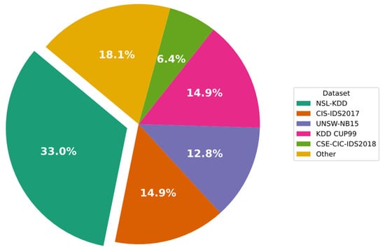 NSL-KDD was developed to overcome the limitations of the KDD Cup99 dataset, and thus, it is nothing new. The KDD Cup99 dataset contains vast amounts of redundant records, with around 75 and 78% being duplicated in the testing and training datasets, respectively. Thus, this generates a bias in the learning algorithm. To address this issue, NSL-KDD was developed, which is a new version of the KDD Cup99 dataset. This new version is now widely used for anomaly detection. There are four files contained in this dataset, two of which are for training (“KDDTrain+” and “KDDTrain_20%”) and two of which are for testing (“KDDTest+” and “KDDTest-21”) [102,103,104]. The NSL-KSS training and testing datasets are shown in Table 3.