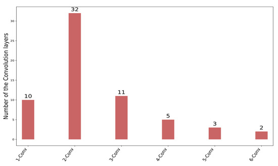 The name CNN was developed from convolution operations. The convolutional layer plays a critical role in the CNN architecture because it is the component that carries out feature extraction. The layer usually contains both linear and nonlinear operations, i.e., a convolution operation and an activation function [90]. Additionally, convolution operations apply a filter (or kernel) to protect the spatial relationship between pixels by using learning features. The terms “activation map”, “convolved feature”, and “feature map” are used to describe the data produced during a convolution operation. When a CNN is training to learn the features of a new input more effectively, the values of the kernel are automatically modified. The dimensional values of depth (i.e., the number of filters applied), stride (i.e., the number of pixels by which the filter slides), and zero padding (i.e., padding data with zeros at the border) determine the size of the feature map.
