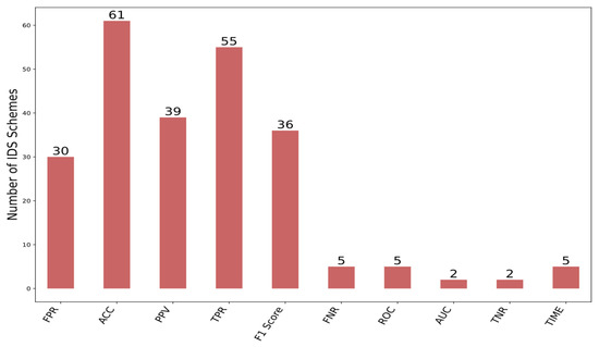 It is impossible to visually interpret machine learning algorithms’ performance, meaning that quantitative metrics (e.g., PPV, TPR, F1, and confusion matrix) must be employed to perform assessments. As with other classification problems, the IDS task’s confusion matrix includes terminologies such as true positive (TP), false positive (FP), true negative (TN), and false negative (FN). In IDS tasks, TP, FP, TN, and FN typically refer to attack data that are correctly classified as an attack, normal data that are incorrectly classified as an attack, normal data that are correctly classified as normal, and attack data that are incorrectly classified as normal, respectively. Table 4 presents the terminologies and performance assessment measures employed in IDS studies. For additional clarification, all terminologies used for the same measurement are shown in the table.