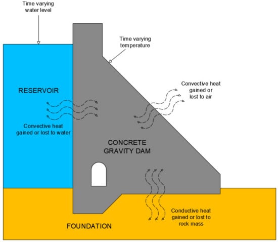 Figure 2 shows the examined heat transfer processes in the concrete gravity dam (CGD) represented in this paper.