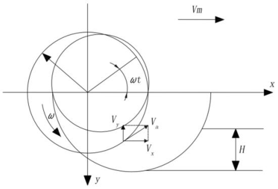 where ω is angular velocity of rotary blade rotation (rad/s); t is soil cutting time (s); Vm is the speed of rotary blade at a certain time (m/s).