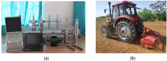 Field test. (a) general dynamic telemetry system for agricultural machinery; (b) field operation device.